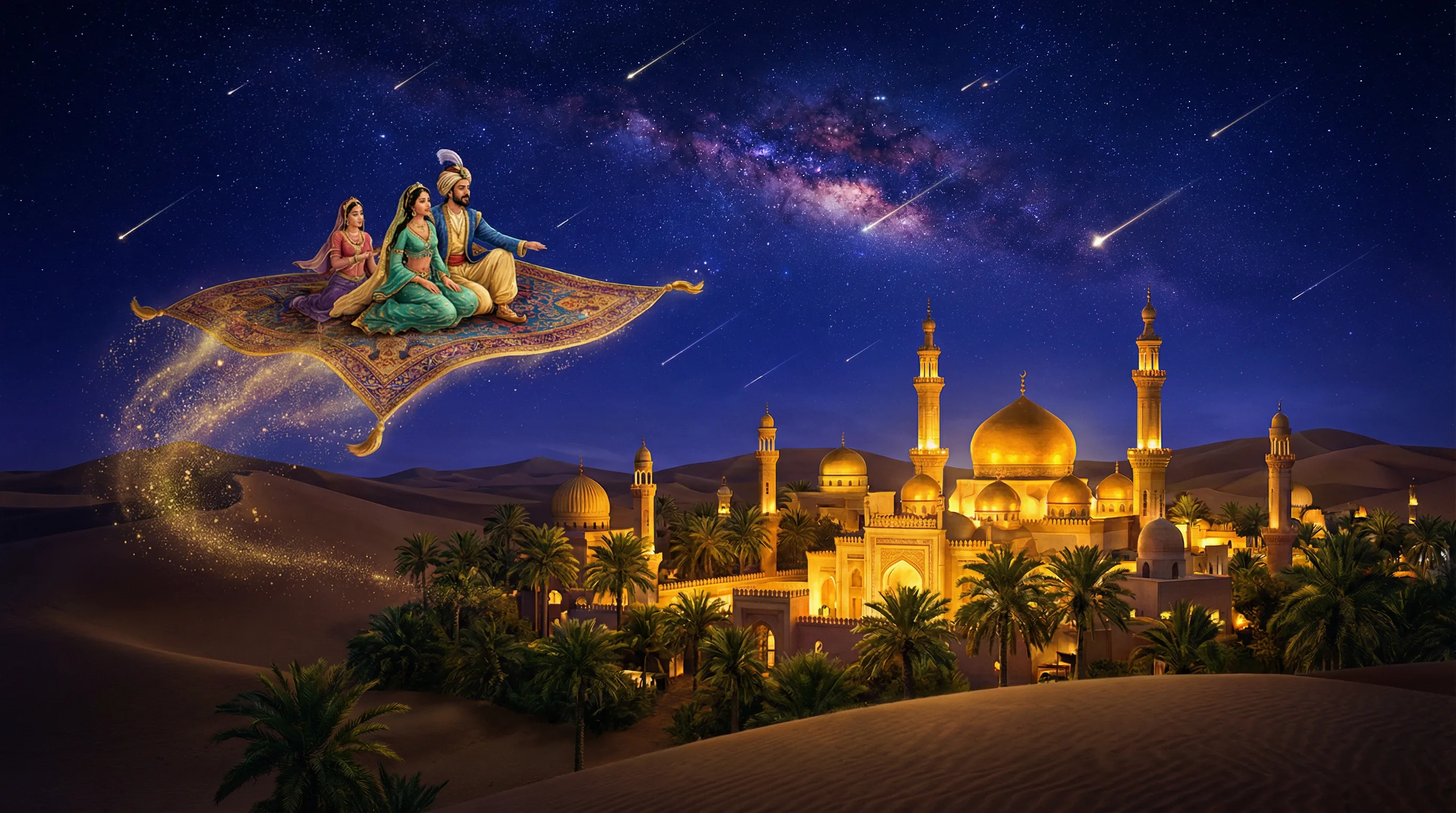 东升国际飞毯穿越沙漠绿洲的壮丽夜景